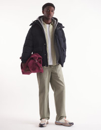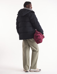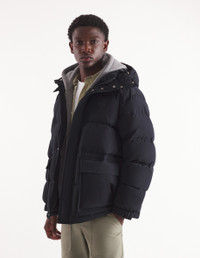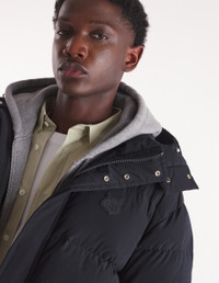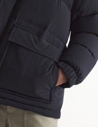 DETAILS Water-resistant technical material puffer jacket with hood. Regular fit with silicon Fox Head patch on the chest. - Plain water-resistant technical material puffer jacket - Regular fit - High collar with hood - Hidden zipper and snap closure - Double Profile Fox engraved slider - Interior drawstring waist with stoppers - Long sleeves finished off with elasticated cuffs - Ribbed cuffs - Two patch pockets with snap flaps - Tonal silicon Fox Head patch on the chest - Quilted lining - Interior patch pocket with Velcro NM02209WQ4031-P199 SIZE & CUT Cut: REGULAR Sizing: MEN MATERIAL Main Material: 100% POLYESTER, Stuffing material: 10% FEATHER, 90% DUCK DOWN, Lining: 100% POLYESTER TRACEABILITY Made in China
