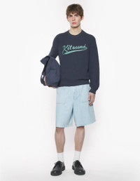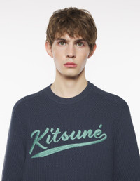DETAILS Textured cotton jumper. Comfort cut with Kitsune Varsity logo embroidered. - Textured cotton jumper - Honeycomb stitch - Comfort cut - Crewneck - Contrasted Kitsune Varsity logo embroidered on the front - Long raglan sleeves - Ribbing at the neckline, cuffs, and waist OM00808KT1137-0076 SIZE & CUT Cut: COMFORT Sizing: MEN The male model is 11 and is wearing size M MATERIAL 70% COTTON, 30% POLYAMIDE TRACEABILITY Made in China