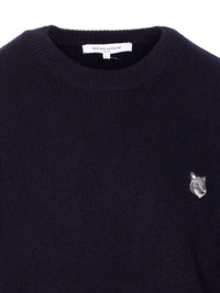 crew-neck sweater Highlights - Blue - Crew neck - Fox head applique - Long sleeves - Ribbed hem - Ribbed cuffs Imported Composition Wool 100% Washing instructions Read Manufacturer Guidelines