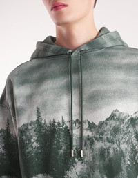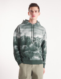 DETAILS Long sleeve printed fleece hoodie. Oversized cut with all-over Landscape print. - Printed hoodie - Oversized cut - Drawstring hood - Trim: drawstring and metal eyelets - Long sleeves - Plain ribbing at the cuffs and waist - All-over Landscape print NM00706KM0001-P391 SIZE & CUT Cut: OVERSIZE Sizing: MEN The male model is 6.1 and is wearing size M MATERIAL 100% COTTON TRACEABILITY Made in Portugal