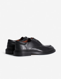 DETAILS Supple nappa leather derbies. - Nappa leather derby shoes - Open lacing construction - Overlaid quarters on the vamp for comfort - Discreet tonal decorative stitching - Almond-shaped toe - Leather lining - Leather outsole with rubber insert and embossed Maison Kitsune Paris and Profile Fox signatures - Leather insole with embossed Maison Kitsune logo PM04101LG0002-P199 SIZE & CUT Sizing: MEN MATERIAL Main Material: 100% COW LEATHER, Secondary material: 70% COW LEATHER, 30% RUBBER, Lining: 100% COW LEATHER TRACEABILITY Made in Portugal