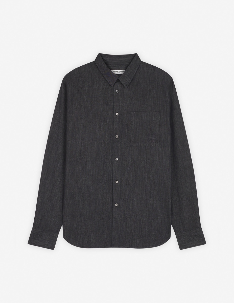 DETAILS Light denim shirt. Relaxed fit with Contour Fox Head embroidered on the chest. - Light denim shirt - Relaxed fit - Shirt collar - Button closure - Long sleeves finished off with button straight cuffs - Patch chest pocket with tonal Contour Fox Head embroidery - Rounded hem NM00403WD4006-P470 SIZE & CUT Sizing: MEN The male model is 6 and is wearing size M MATERIAL 100% COTTON TRACEABILITY Made in Portugal