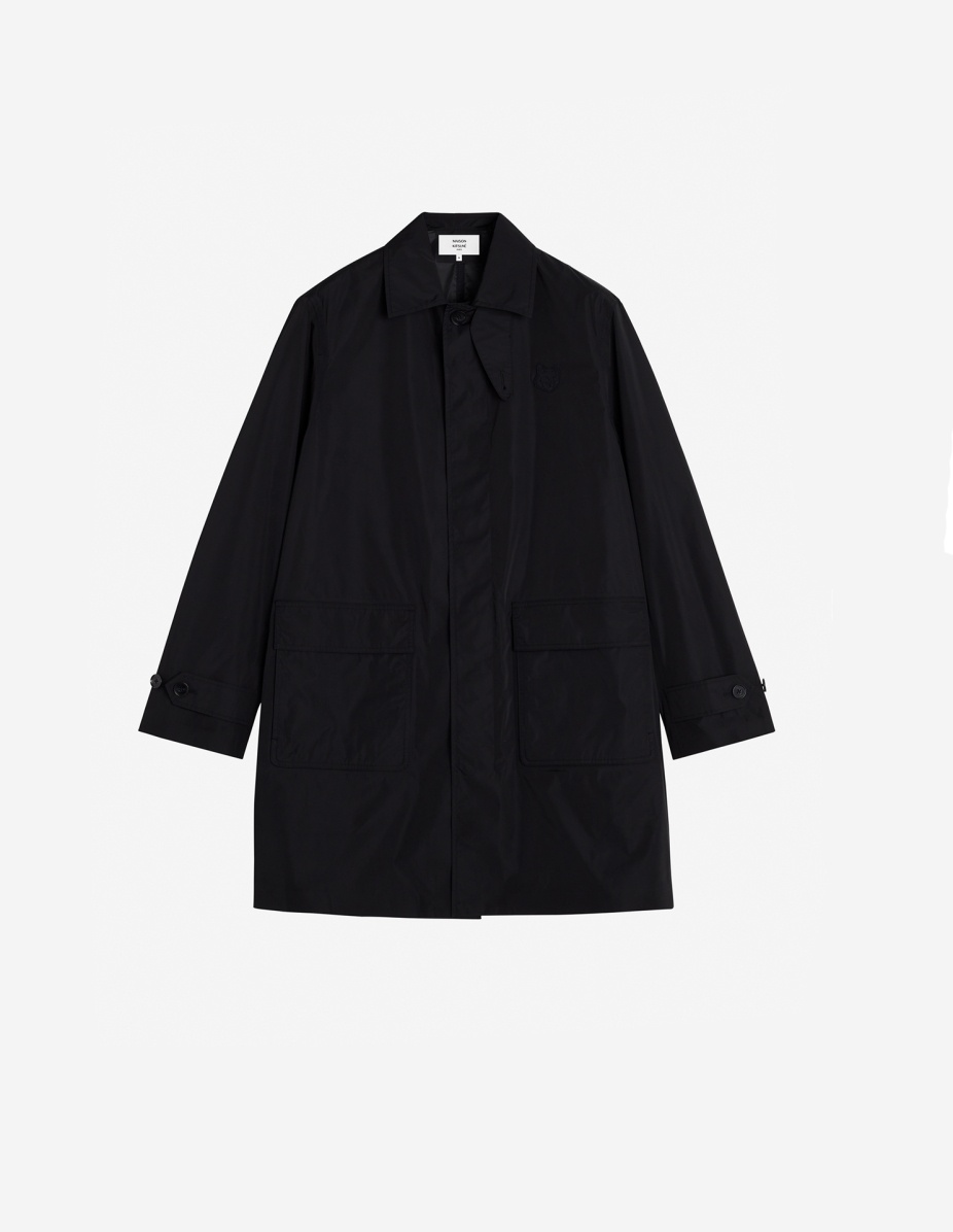 DETAILS Light mac coat in technical fabric. Comfort cut with Bold Fox Head silicone patch. - Light mac coat in plain technical fabric - Comfort cut - Shirt collar with buttoned chin strap - Hidden button closure - Long sleeves finished off with button tabs - Tone-on-tone Bold Fox Head silicone patch on the chest - Two front patch pockets with flaps - Back vent OM02212WQ4044-P199 SIZE & CUT Cut: COMFORT Sizing: MEN The male model is 9.5 and is wearing size M MATERIAL 100% POLYESTER TRACEABILITY Made in China