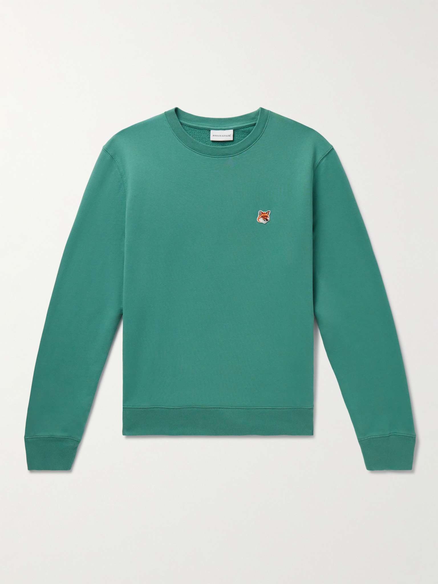 This sweatshirt is appliquéd with Maison Kitsuné's fox mascot - in Japanese folklore the animal is believed to live a multitude of lives, which reflects the different facets of the brand. This style is made from breathable loopback cotton-jersey and has a regular fit. Size & Fit - Model wears a size larger to achieve a looser fit - Mid-weight, slightly stretchy fabric - Model is shown wearing a M - Model measures: chest 36"/ 92cm, height 6'0"/ 183cm Details & Care - Green loopback cotton-jersey - 100% cotton - Machine wash