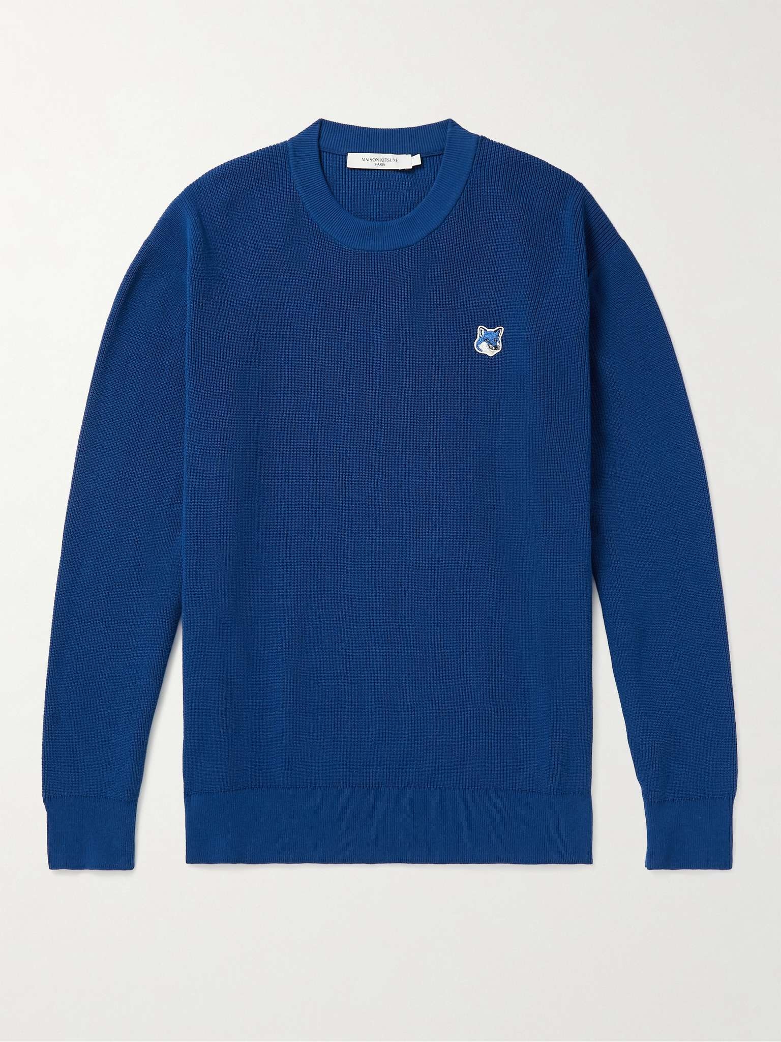 Maison Kitsuné's Paris-meets-Tokyo aesthetic has earned the brand a loyal fan base all over the world. Made from cotton, this signature sweater is detailed with the iconic fox motif, a symbol of versatility. Style yours with a tee to complement the relaxed profile. Size & Fit - Model wears a size larger to achieve a looser fit - Mid-weight knit - Model is shown wearing a M - Model measures: chest 36"/ 92cm, height 6'0"/ 183cm Details & Care - Blue cotton - 100% cotton - Hand wash or dry clean - Designer colour: Deep Blue