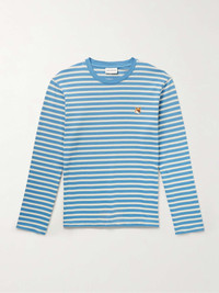 Maison Kitsuné's T-shirt is printed with nautical stripes, a pattern forever associated with its native France. It's cut for a comfortable fit from cotton-jersey and appliquéd at the chest with the signature fox mascot. Size & Fit - Model wears a size larger to achieve a looser fit - Mid-weight, stretchy fabric - Model is shown wearing a M - Model measures: chest 36"/ 92cm, height 6'2"/ 188cm Details & Care - Light-blue and off-white cotton-jersey - 100% cotton - Machine wash - Designer colour: Drifter Blue Stripes