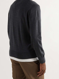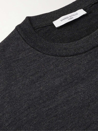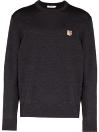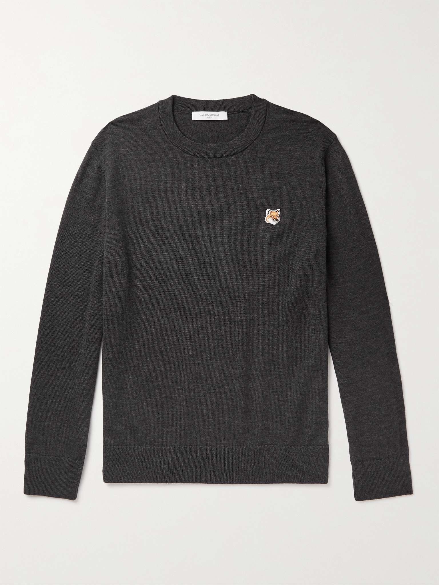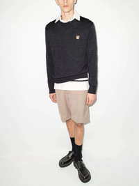 - Anthracite mélange wool - Crew neck, appliquéd designer emblem, ribbed trims - 100% wool - Hand wash