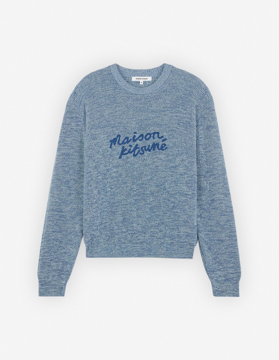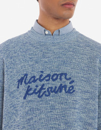 DETAILS Long sleeve mouline cotton jumper. Comfort cut with Maison Kitsune Handwriting embroidered on the chest. - Mouline cotton jumper - Comfort cut - Crewneck - Long sleeves - Maison Kitsune Handwriting embroidered on the chest - Plain back MM00807KT1108-H476 SIZE & CUT Cut: COMFORT Sizing: MEN The male model is 6.1 and is wearing size M MATERIAL 100% COTTON TRACEABILITY Made in Bulgaria