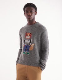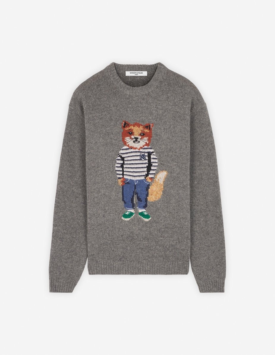 DETAILS Long sleeve intarsia knit jumper. Comfort fit with intarsia Dressed Fox at the front. - Intarsia knit jumper - Comfort fit - Crewneck - Long sleeves - Ribbing at the neckline, cuffs, and waist - Intarsia Dressed Fox and embroidered trim at the front - Fox Head embroidery at the front NM00809KH0002-H131 SIZE & CUT Cut: COMFORT Sizing: MEN The male model is 6.2 and is wearing size M MATERIAL 100% WOOL TRACEABILITY Made in China