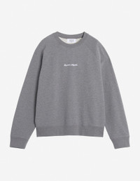 DETAILS Long sleeve fleece sweatshirt. Oversized cut with embroidered Maison Kitsune Handwriting signature. - Plain fleece sweatshirt - Oversized cut - Crewneck - Contrasted Maison Kitsune Handwriting signature embroidered on the front - Long raglan sleeves - Ribbing at the neckline, cuffs, and waistband - Plain back OM00309KM0001-H131 SIZE & CUT Cut: OVERSIZE Sizing: MEN MATERIAL Main Material: 100% COTTON, RIB: 98% COTTON, 2% ELASTANE TRACEABILITY Made in Portugal