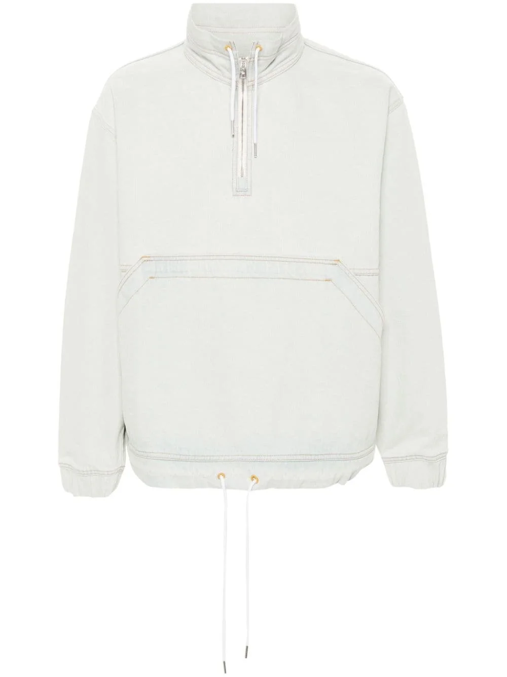logo-patch denim jacket Highlights - Light blue - Cotton - Denim - Bleach wash - Stand-up collar - Drop shoulder - Long sleeves - Elasticated cuffs - Embroidered logo at the sleeve - Two front pouch pockets - Logo patch to the rear - Drawstring hem - Half front zip fastening Imported Composition Cotton 100% SIZE & FIT Model measurements Height 6 ft 0 in(1.84 m) Bust/Chest 35.82 in(91 cm) Hips 37 in(94 cm) Waist 28.34 in(72 cm) FittingInformation Designed to be unstructured, offering a loose fit throughout The internal drawstring at the hem allows for fitted preferences Sturdy and hard-wearing, this denim piece offers no stretch This piece fits true to size – take your usual size