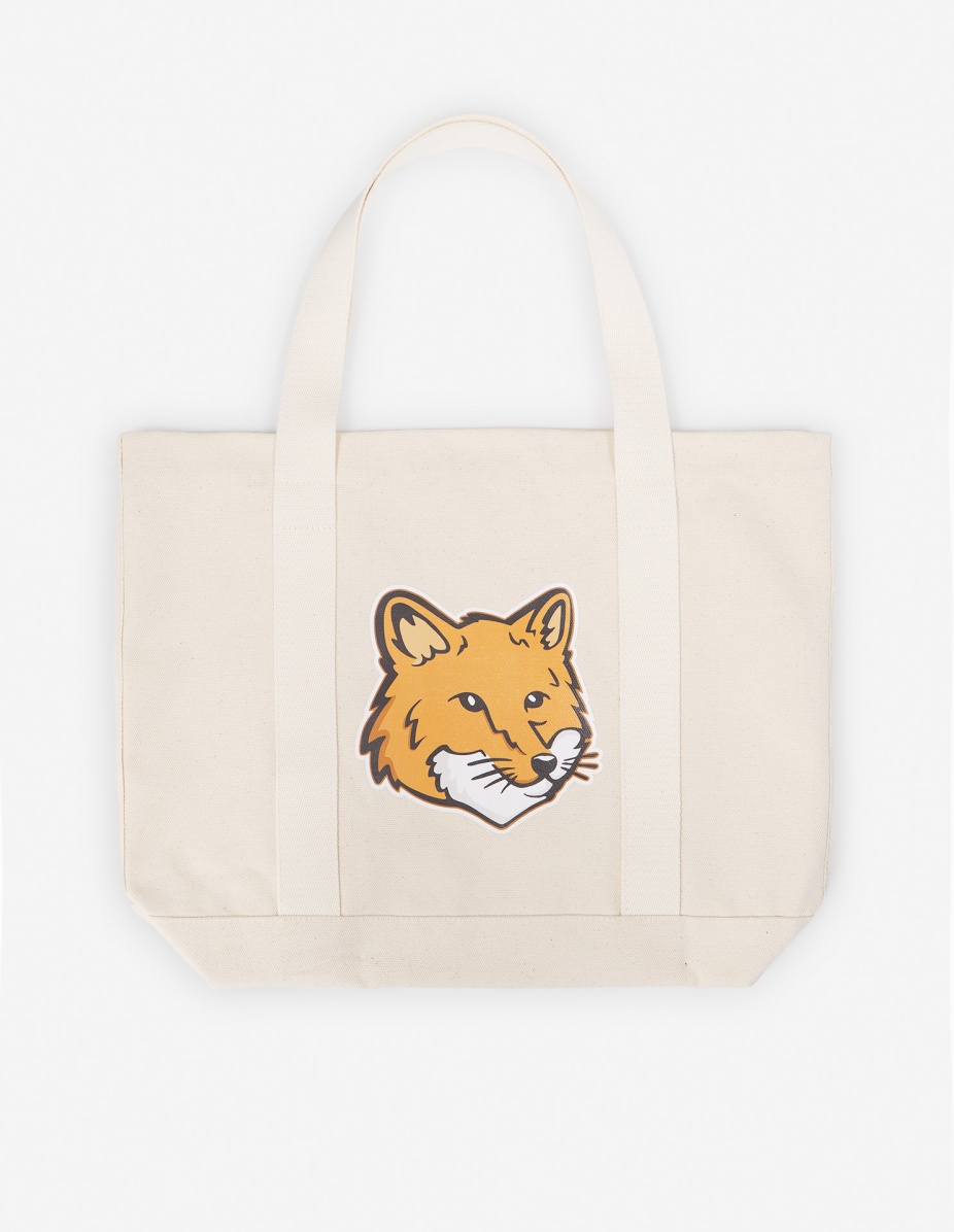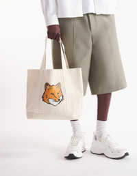 DETAILS Canvas tote bag with Fox Head embroidery at the front and “Maison Kitsune” at the back. - Canvas tote bag - Grosgrain handles for handheld wear - “Maison Kitsune” interior label - Topstitched seams - Embroidered Bold Fox at the front and Maison Kitsune at the back - Dimensions: 43x32,5 cm LW05101WW0050-P700 SIZE & CUT Sizing: WOMEN MATERIAL Exterior: 100% COTTON TRACEABILITY Made in China