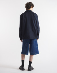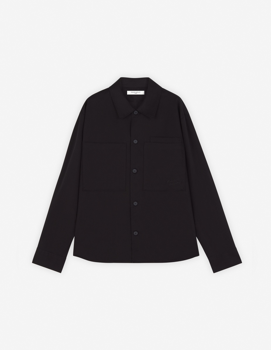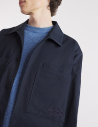 DETAILS Brushed cotton gabardine overshirt with pockets. Relaxed fit with "Maison Kitsune Handwriting" signature embroidered on the chest. - Plain brushed cotton gabardine overshirt - Relaxed fit - Shirt collar - Closure with engraved horn buttons - Long sleeves finished off with button straight cuffs - Three patch chest pockets - Tonal embroidered "Maison Kitsune Handwriting" signature on one pocket - Plain back MM00401WW0122-P199 SIZE & CUT Cut: RELAXED Sizing: MEN The male model is 6 and is wearing size M MATERIAL 100% COTTON TRACEABILITY Made in Bulgaria