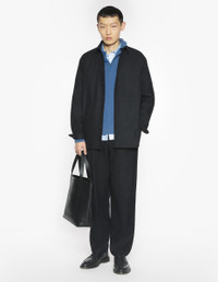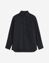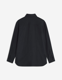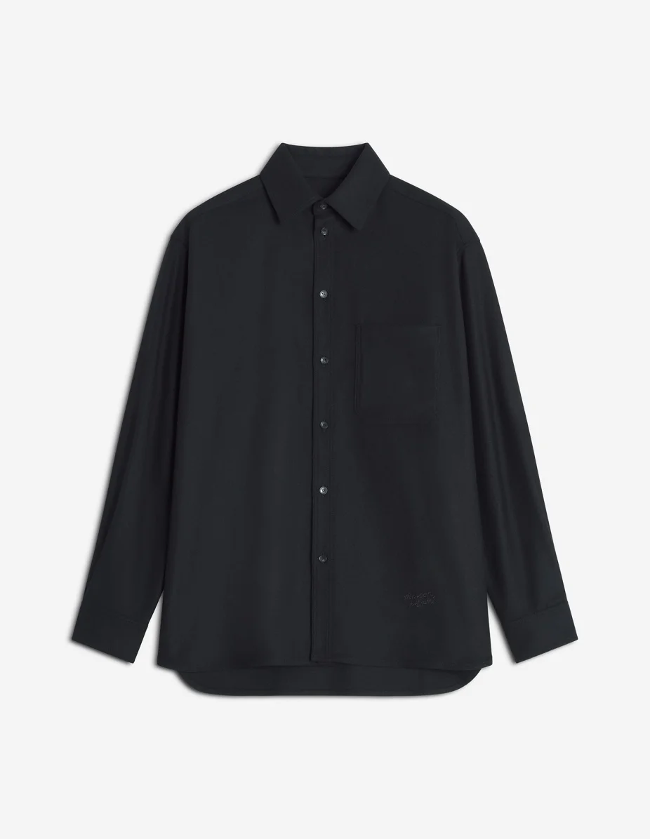 DETAILS Oversize fit wool flannel shirt with embroidered Maison Kitsune Handwriting signature. - Oversize flannel shirt in recycled wool - Oversize fit - Classic collar - Long sleeves finished with a straight buttoned cuff - Classic collar - Maison Kitsune engraved button fastening - Patch chest pocket - Maison Kitsune Handwriting signature embroidered at the bottom left PM00427WT3017-P199 SIZE & CUT Cut: OVERSIZE Sizing: MEN The male model is 6.1 and is wearing size M MATERIAL 100% WOOL TRACEABILITY Made in Romania