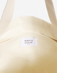 DETAILS Cotton canvas tote bag with Maison Kitsune Handwriting signature print. - Cotton canvas tote bag - Two large handles for hand and shoulder carry - Contrasted Maison Kitsune Handwriting signature print on the front - Interior patch pocket with woven label with contrasted Maison Kitsune Paris logo - Dimensions: 43 x 32.5 cm OW05124WW9042-P700 SIZE & CUT Sizing: WOMEN MATERIAL 100% COTTON TRACEABILITY Made in China