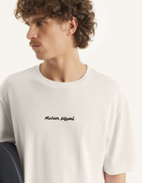 DETAILS T-shirt in cotton skate jersey (280g). Comfort fit with Maison Kitsune Paris embroidery on the chest. - Maison Kitsune Paris t-shirt cotton skate jersey (280g) - Comfort fit - Crew neck - Ribbing at the neckline - Maison Kitsune Paris embroidery on the middle chest QM00100KJ7025-0063 SIZE & CUT Cut: COMFORT Sizing: MEN The male model is 6 tall and wears a size S MATERIAL 100% ORGANIC COTTON TRACEABILITY Made in Portugal