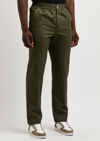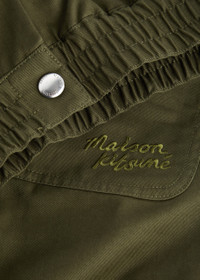Info & Care Maison Kitsune cotton trousers Elasticated waistband, two slip pockets, two back patch pockets, logo embroidery at back; Concealed press-stud and zip fastenings at front; 100% cotton; Machine wash; Size & Fit Inside leg length: 29 inches/ 73.5cm Midweight; Straight-leg cut; Model is 6'1"/ 185cm and wears a size medium