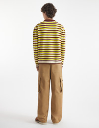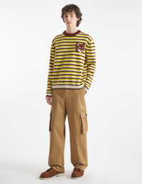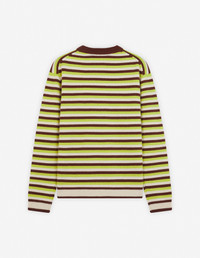 DETAILS Long sleeve intarsia knit jumper with stripes. Comfort fit with intarsia Fox Head on the chest. - Striped intarsia knit jumper - Comfort fit - Crewneck - Long sleeves - Ribbing at the neckline, cuffs, and waist - Intarsia Fox Head on the chest NM00802KM0329-0020 SIZE & CUT Cut: COMFORT Sizing: MEN The male model is 6 and is wearing size M MATERIAL 100% WOOL TRACEABILITY Made in China