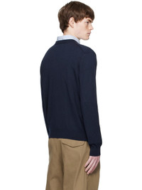 Knit wool sweater. · Rib-knit crewneck, cuffs, and hem · Logo patch embroidered at chest Supplier color: Classic Navy 100% wool. Made in Morocco 252389M201007