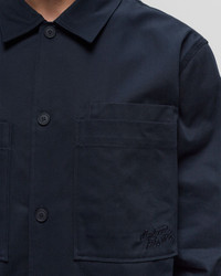 The Maison Kitsuné cotton gabardine overshirt comes with a straight cut and long sleeves finished off with buttoned cuffs. The shirt features a front button placket, three patch chest pockets and a classic shirt collar. Logo embroidery on one of the pockets rounds off the design. - Straight cut - Shirt collar - Front button placket - Three patch chest pockets - Long sleeves with buttoned cuffs - Logo embroidery Article Number: MM00401WW0078-DEEP-NAVY Gender: Men Color: DEEP NAVY Material: 100% Cotton