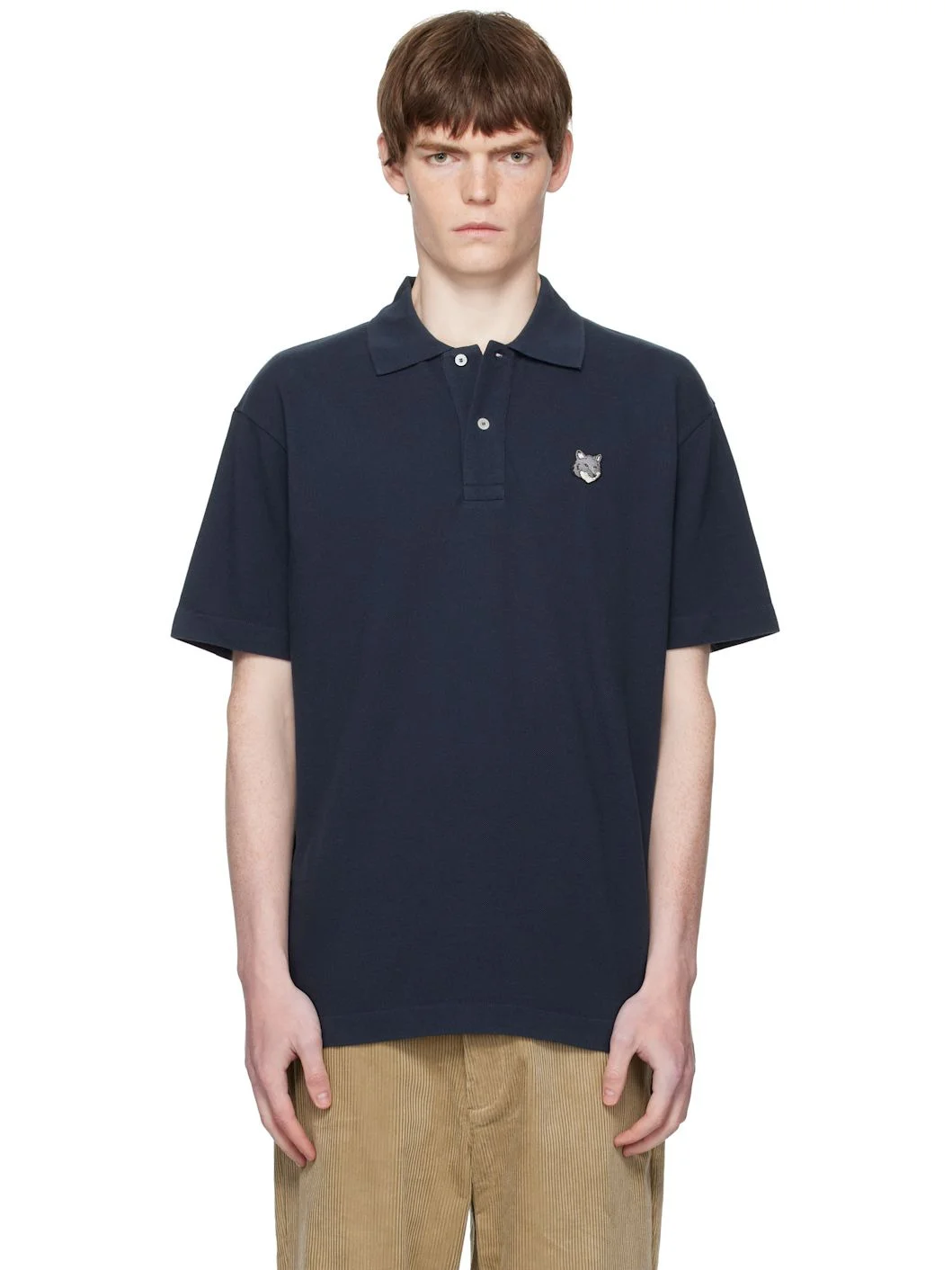 Cotton pique polo. · Rib-knit spread collar · Two-button placket · Logo patch embroidered at chest · Tennis-tail hem Supplier color: Classic Navy 100% cotton. Made in Portugal 252389M212009