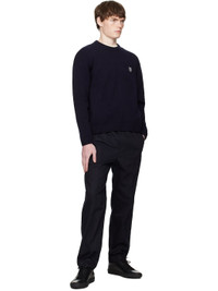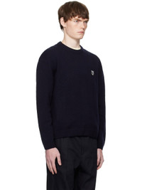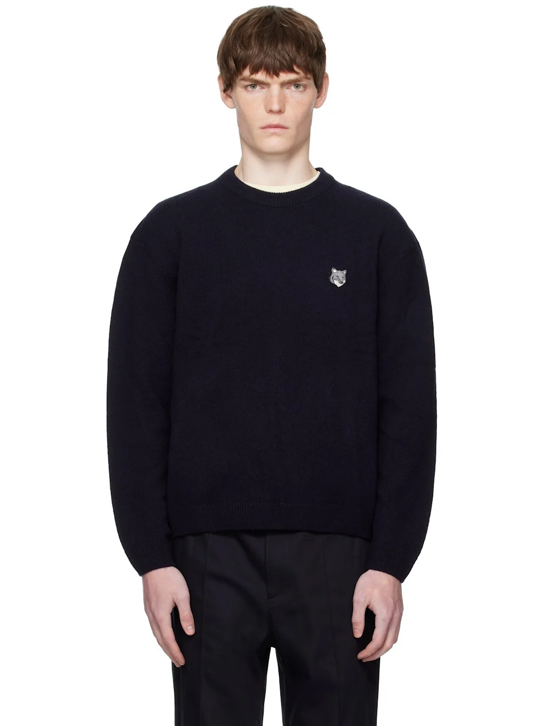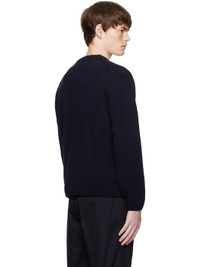 Knit lambswool sweater. · Rib-knit crewneck, cuffs, and hem · Logo patch embroidered at chest Supplier color: Classic Navy 100% wool. Made in Morocco 252389M201003