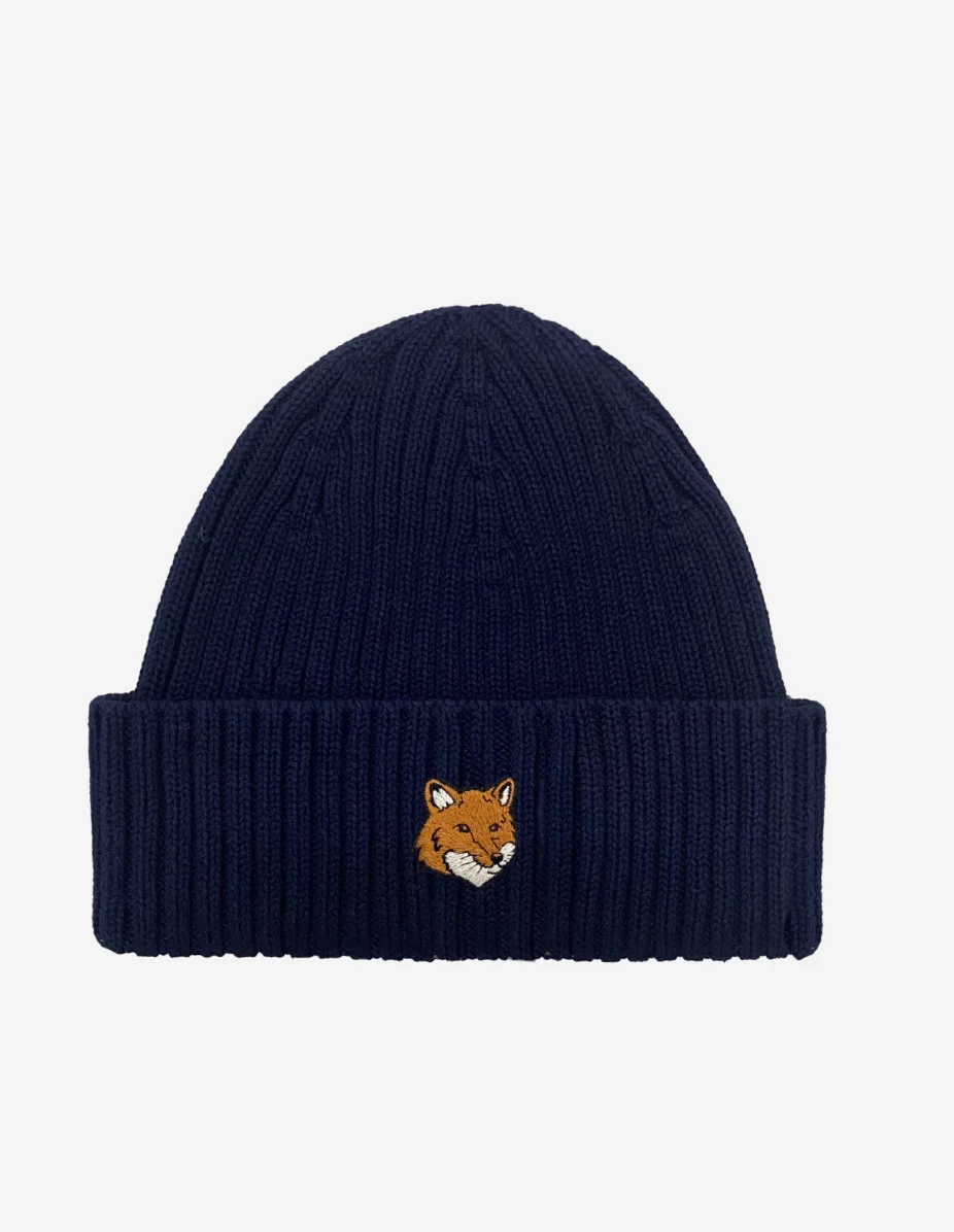 DETAILS Cotton beanie with Fox Head embroidered patch on the cuff. - Ribbed cotton knit beanie - Embroidered Fox Head patch on the cuff PM06111KT1140-0413 SIZE & CUT Sizing: UNISEX MATERIAL 100% COTTON TRACEABILITY Made in Morocco