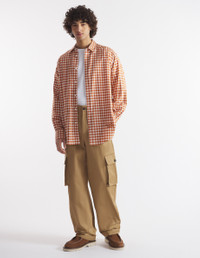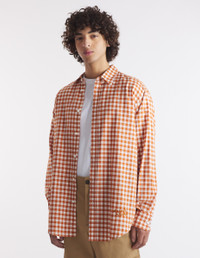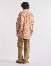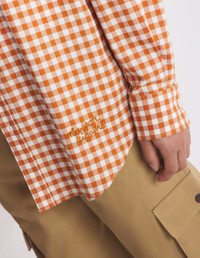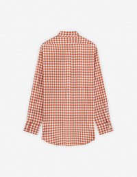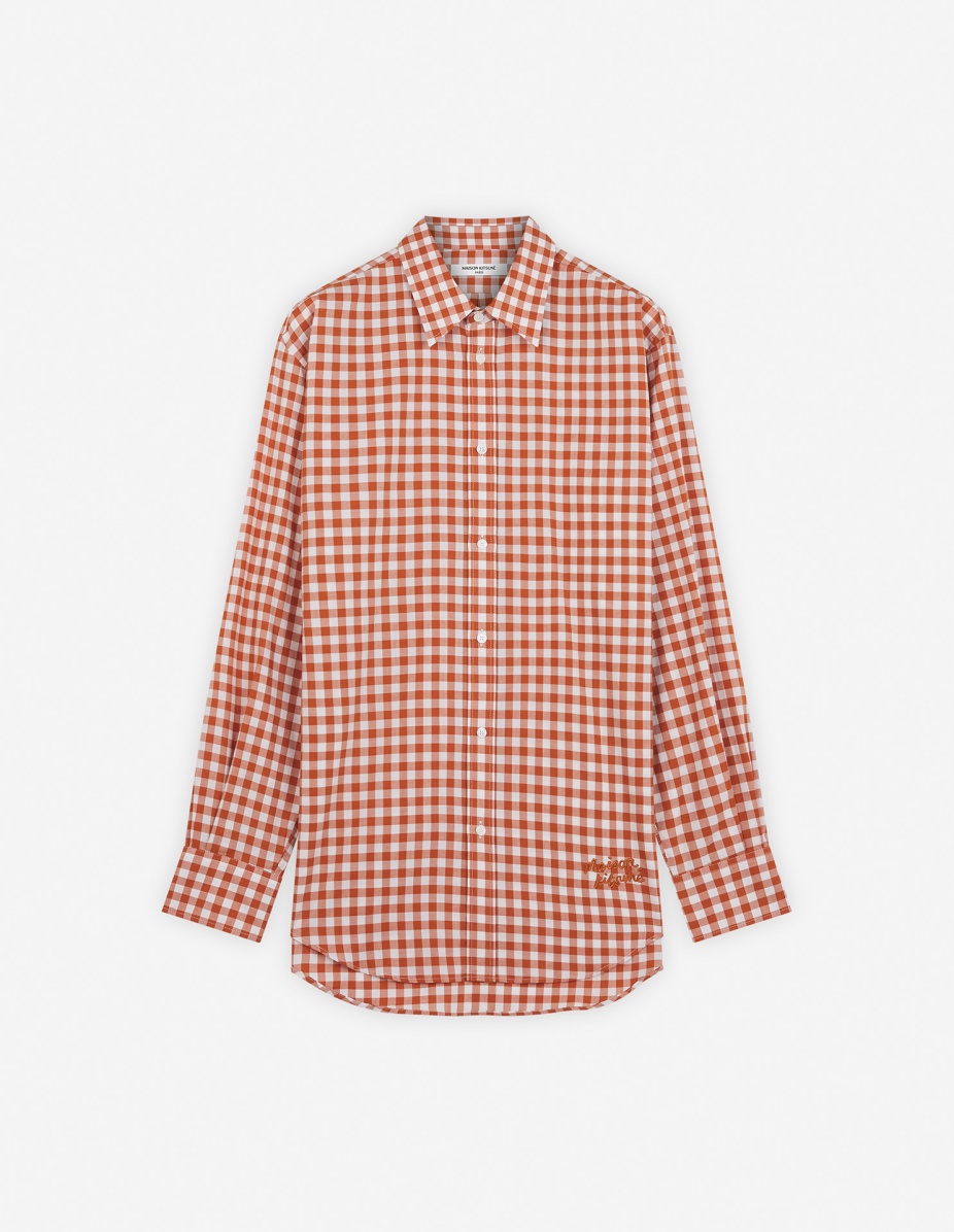 DETAILS Flannel gingham skate shirt with "Maison Kitsune Handwriting" signature embroidered at the bottom. - Flannel gingham skate shirt - Skate fit - Shirt collar - Button closure - Long sleeves finished off with button straight cuffs - Embroidered "Maison Kitsune Handwriting" signature embroidered at the bottom - Rounded hemline MM00405WC5019-B852 SIZE & CUT Cut: OVERSIZE Sizing: MEN The male model is 6 and is wearing size M MATERIAL 100% COTTON TRACEABILITY Made in Portugal