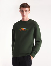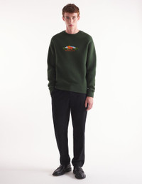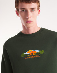 DETAILS Long sleeve fleece sweatshirt. Comfort cut with “Maison Kitsune” National Parks embroidered on the chest. - Plain fleece sweatshirt - Comfort cut - Crewneck - Long sleeves - Ribbing at the neckline, cuffs, and waist - Embroidered “Maison Kitsune” National Parks on the chest - Plain back NM00308KM0307-P391 SIZE & CUT Cut: COMFORT Sizing: MEN The male model is 6.2 and is wearing size M MATERIAL 100% COTTON TRACEABILITY Made in Portugal