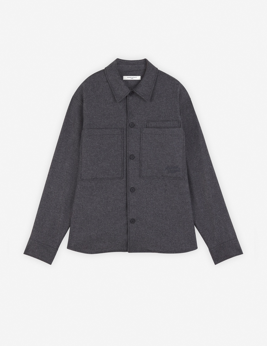DETAILS Flannel overshirt with pockets. Relaxed fit with "Maison Kitsune Handwriting" signature embroidered on the chest. - Flannel overshirt - Relaxed fit - Shirt collar - Button closure - Long sleeves finished off with button straight cuffs - Three patch chest pockets - Tonal embroidered "Maison Kitsune Handwriting" signature on one pocket - Plain back MM00401WT0032-H150 SIZE & CUT Cut: RELAXED Sizing: MEN The male model is 6.1 and is wearing size 40 MATERIAL 30% POLYAMIDE, 70% WOOL TRACEABILITY Made in Bulgaria