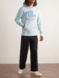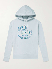 Maison Kitsuné highlights its roots with this hoodie. It's cut from loopback cotton-jersey and printed with the label's 'Palais Royal' logo, referencing the location of its first café-bar that opened in Paris in 2019. Small to size. See Size & Fit notes. Size & Fit - Fits small to size. Take one size larger than normal - Designed for a relaxed fit - Mid-weight, slightly stretchy fabric - Model is shown wearing a M - Model measures: chest 36"/ 92cm, height 6'0"/ 183cm Details & Care - Tonal-blue loopback cotton-jersey - 100% cotton - Machine wash