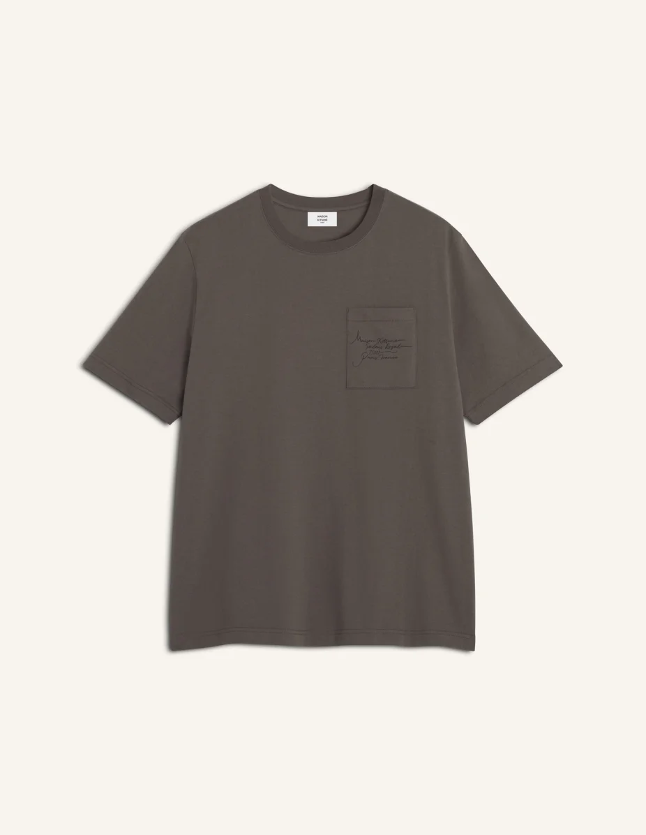 DETAILS T-shirt in cotton skate jersey (280g). Comfort fit with Poetic Script print on the chest pocket. - T-shirt in cotton skate jersey (280g) - Comfort fit - Crew neck - Ribbing at the neckline - Patch pocket on the chest with Poetic Script print QM00104KJ7025-0453 SIZE & CUT Cut: COMFORT Sizing: MEN The male model is 6 tall and wears a size S MATERIAL 100% ORGANIC COTTON TRACEABILITY Made in Portugal