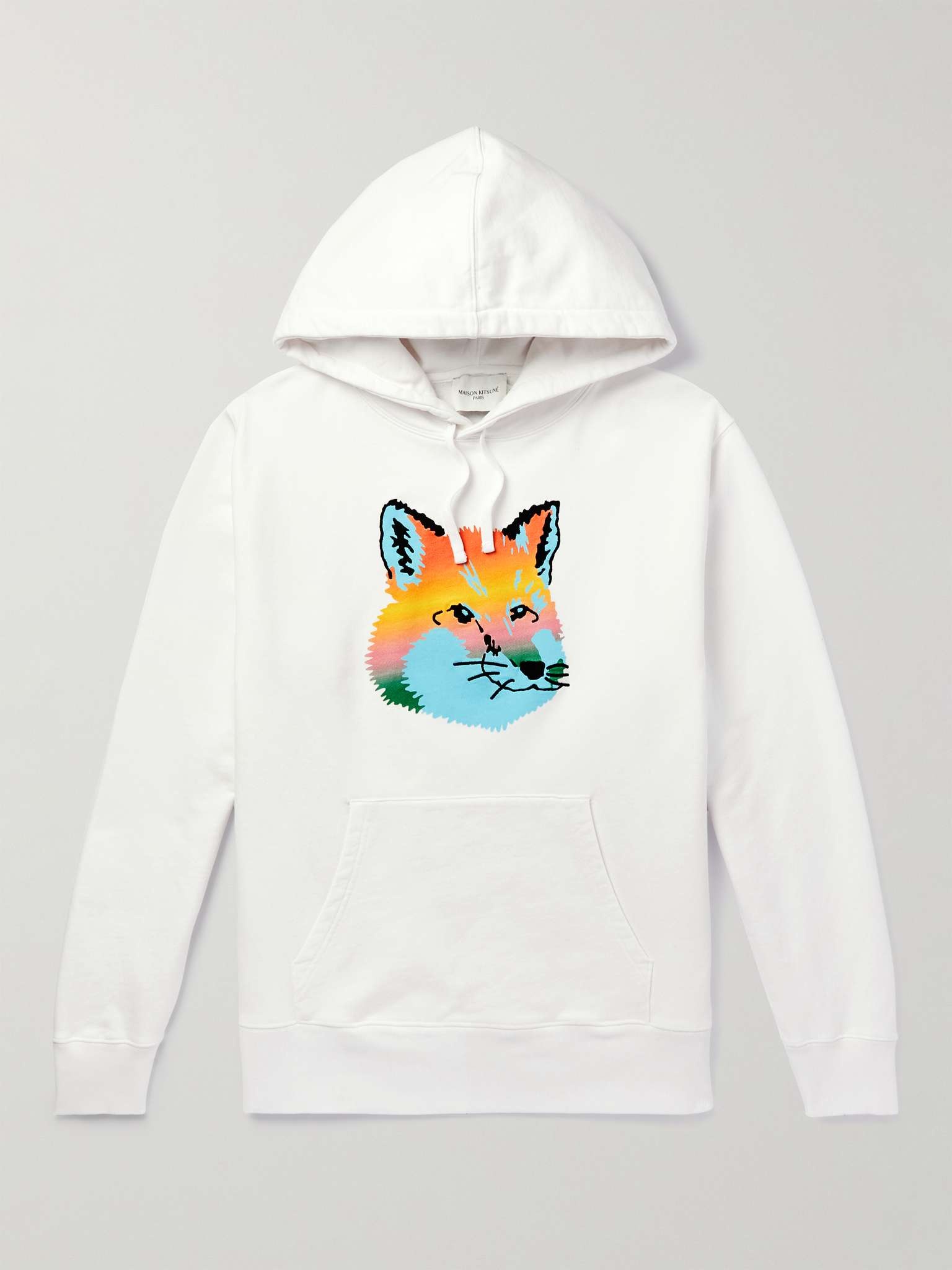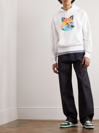 This hoodie is printed with a 'vibrant' version of Maison Kitsuné's signature fox motif - look closely and you'll notice the mascot's features are embroidered. It's made from soft fleece-back cotton-jersey and cut for a slightly loose fit. Size & Fit - Fits true to size. Take your normal size - Designed for a slightly loose fit - Mid-weight, slightly stretchy fabric - Model is shown wearing a M - Model measures: chest 38"/ 96cm, height 6'2"/ 188cm Details & Care - Multicoloured fleece-back cotton-jersey - 100% cotton - Machine wash - This item has been imported