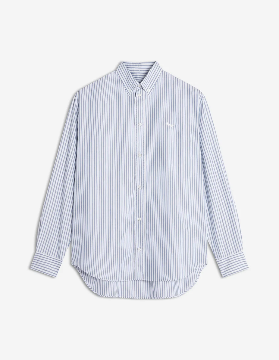 DETAILS Striped cotton oxford casual shirt. Comfort fit with Profile fox embroidery. - Casual striped cotton oxford shirt - Comfort fit - Button-down collar - Maison Kitsune engraved button fastening - Profile fox embroidery on the chest - Long sleeves finished with a straight buttoned cuff - Rounded hem - Plain back PM00413WC5079-0333 SIZE & CUT Cut: COMFORT Sizing: MEN The male model is 6.1 and is wearing size M MATERIAL 100% COTTON TRACEABILITY Made in Lithuania