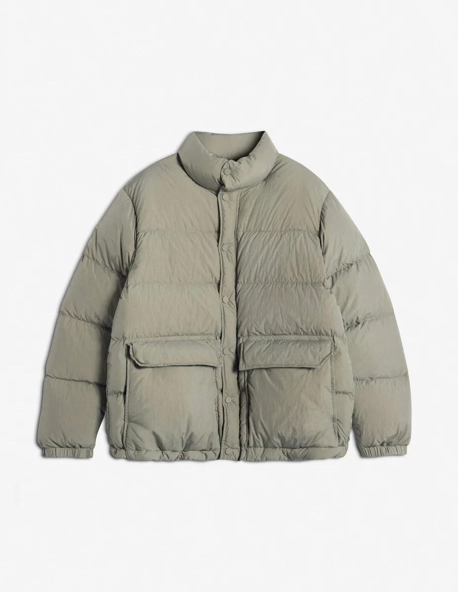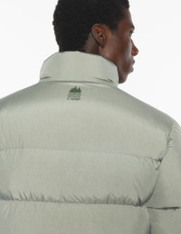 DETAILS Lightweight nylon quilted puffer jacket. Comfort fit and Maison Kitsune Camp signature at the back. - Quilted lightweight nylon puffer jacket - Comfort fit - Down padding - Hidden zip fastening under snap buttons - Two flap patch pockets at the front - Inside pocket - Elasticated cuffs - Adjustable waist with drawstring at the inside bottom - Maison Kitsune Camp signature printed on the front pocket and the back PM02230WQ4070-P131 SIZE & CUT Cut: COMFORT Sizing: MEN The male model is 6.1 and is wearing size M MATERIAL Main Material: 100% POLYAMIDE, Stuffing material: 90% DUCK DOWN, 10% DUCK FEATHER, Lining: 100% POLYAMIDE TRACEABILITY Made in China