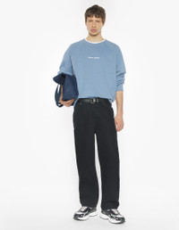DETAILS Denim jeans. Relaxed fit with Maison Kitsune Handwriting embossed leather jacron. - Denim jeans - Relaxed fit - Waistband with belt loops - Maison Kitsune engraved metal button and butonned fly under placket - Five pockets - Maison Kitsune Handwriting embossed leather jacron at the back PM01111WD4018-P199 SIZE & CUT Cut: RELAXED Sizing: MEN The male model is 6.1 and is wearing size 30 MATERIAL Main Material: 100% COTTON, Pocket lining: 35% COTTON, 65% POLYESTER TRACEABILITY Made in Italy