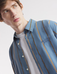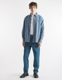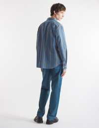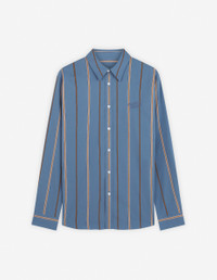DETAILS Heritage striped poplin shirt. Relaxed fit with "Maison Kitsune Handwriting" signature embroidered on the chest. - Heritage striped poplin shirt - Relaxed fit - Shirt collar - Button closure - Long sleeves finished off with button straight cuffs - Tonal embroidered "Maison Kitsune Handwriting" signature on the chest - Rounded hem MM00416WC5029-P446 SIZE & CUT Cut: RELAXED Sizing: MEN The male model is 6 and is wearing size 40 MATERIAL 85% COTTON, 15% POLYAMIDE TRACEABILITY Made in Lithuania