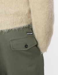 DETAILS Japanese cotton gabardine pleated trousers. Relaxed fit, Maison Kitsune Handwriting signature. - Pleated trousers in Japanese cotton gabardine - Relaxed fit - Set-in waistband with belt loops - Button fastening with zipped fly under placket - Front double pleats - Two Italian side pockets - Two buttoned flap welt pockets at the back - Maison Kitsune Handwriting signature woven label at the back PM01125WW9043-0079 SIZE & CUT Cut: RELAXED Sizing: MEN The male model is 6.1 and is wearing size 40 MATERIAL Main Material: 100% COTTON, Pocket lining: 49% COTTON, 51% VISCOSE TRACEABILITY Made in Romania