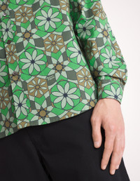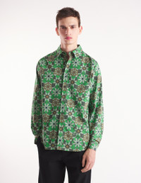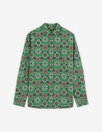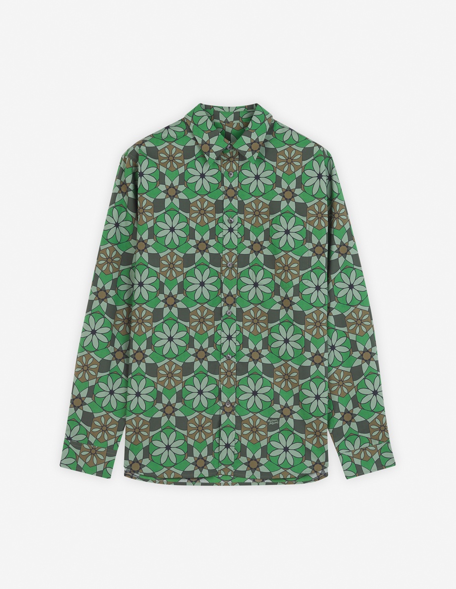 DETAILS Poplin shirt with kaleidoscope print. - Poplin shirt with kaleidoscope print - Relaxed fit - Shirt collar - Button closure - Long sleeves finished off with button straight cuffs - Patch chest pocket - "Maison Kitsune Handwriting" signature integrated into the print - Rounded hem MM00416WC5026-P377 SIZE & CUT Cut: RELAXED Sizing: MEN MATERIAL 100% COTTON TRACEABILITY Made in Lithuania
