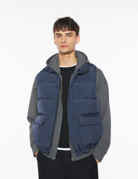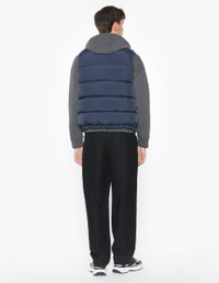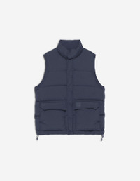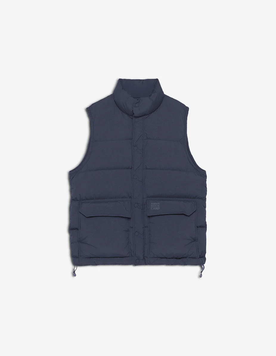 DETAILS Sleeveless lightweight nylon puffer jacket. Comfort fit and Maison Kitsune Camp signature. - Lightweight quilted sleeveless vest in nylon - Comfort fit - Down padding - Hidden zip fastening under snap placket - Two front patch pockets with flaps - Maison Kitsune Camp signature printed on the front pocket and back PM02231WQ4070-P480 SIZE & CUT Cut: COMFORT Sizing: MEN The male model is 6.1 and is wearing size M MATERIAL Main Material: 100% POLYAMIDE, Stuffing material: 90% DUCK DOWN, 10% DUCK FEATHER, Lining: 100% POLYAMIDE TRACEABILITY Made in China