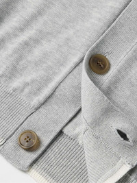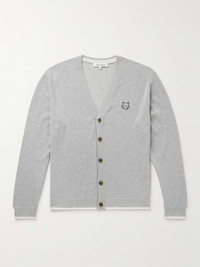 Maison Kitsuné’s signature fox has quite a full agenda - in addition to appearing on the brand's clothing, he's also the mascot of the namesake café and music label. Appliquéd with a 'bold' version at the chest, this slim-fit cardigan is spun from lightweight cotton and detailed with contrast tipping along the cuffs and hem. Small to size. See Size & Fit notes. Size & Fit - Fits small to size. Take one size larger than normal - Designed for a slim fit - Lightweight knit - Model is shown wearing a M - Model measures: chest 36"/ 92cm, height 6'1"/ 185cm Details & Care - Grey mélange and white cotton - Button fastenings - 100% cotton - Hand wash or dry clean