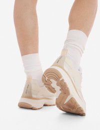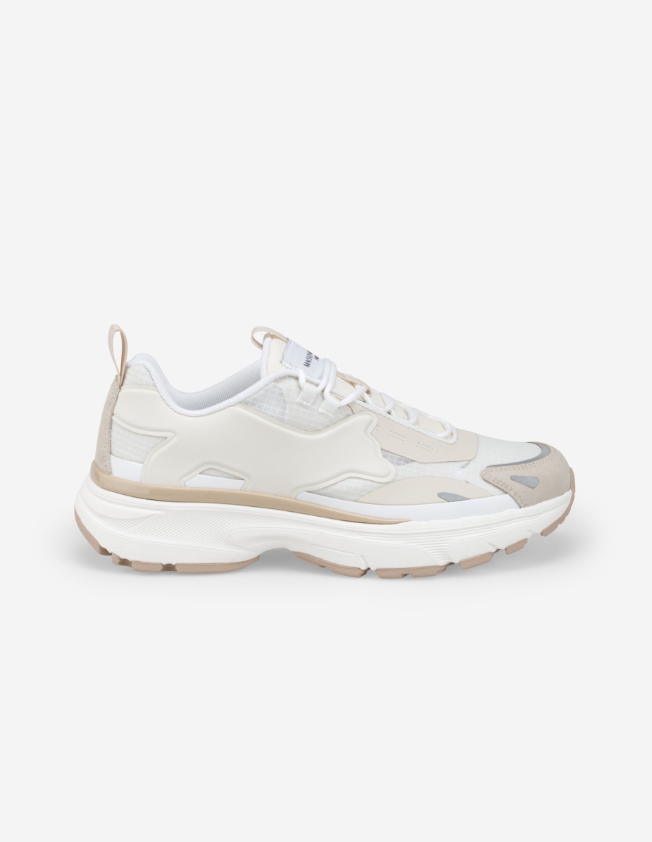 DETAILS The SORA Runners feature a sporty '90s silhouette, designed in a playful contrasted material mix with Profile Fox signature detailing on both sides and a Maison Kitsune Handwriting logo on the back. - Sora Runners lace-up - Running-style sneakers - Mix of materials (smooth leather, suede leather and nylon ripstop) - Fox Profile signature applicated on both sides - Webbing loop on the back - Maison Kitsune logo on the insole - EVA Foam midsole sole for stability confort - Rubber outsole which provides added durability - Maison Kistune Handwriting embossed on the back leather - Unique Profile Fox design molled on the outsole MM04803WQ1101-P205 SIZE & CUT Sizing: MEN The male model is 6.2 and is wearing size 45 MATERIAL Upper: 15% BOVINE LEATHER, 50% POLYAMIDE, 35% POLYURETHANE, Lining: 100% POLYESTER, Outsole: 100% RUBBER TRACEABILITY Made in China
