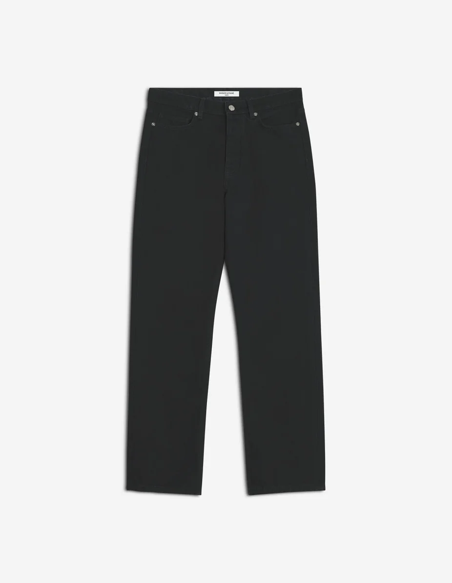 DETAILS Denim jeans. Straight fit with Maison Kitsune Handwriting embossed leather jacron. - Denim jeans - Straight fit - Waistband with belt loops - Maison Kitsune engraved metal button and butonned fly under placket - Five pockets - Maison Kitsune Handwriting embossed leather jacron at the back PM01109WD4018-P199 SIZE & CUT Cut: STRAIGHT Sizing: MEN The male model is 6.1 and is wearing size 30 MATERIAL Main Material: 100% COTTON, Pocket lining: 35% COTTON, 65% POLYESTER TRACEABILITY Made in Italy