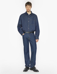 DETAILS Japanese denim jeans. Straight fit with embossed Maison Kitsune Handwriting jacron. - Japanese denim jeans - Straight fit - Waistband with belt loops - Maison Kitsune engraved metal button and buttoned fly under placket - Five pockets - Embossed leather jacron with Maison Kitsune Handwriting signature at the back PM01109WW0081-P470 SIZE & CUT Cut: STRAIGHT Sizing: MEN The male model is 6.1 and is wearing size 30 MATERIAL Main Material: 100% COTTON, Pocket lining: 48% COTTON, 52% POLYESTER TRACEABILITY Made in Bulgaria