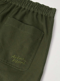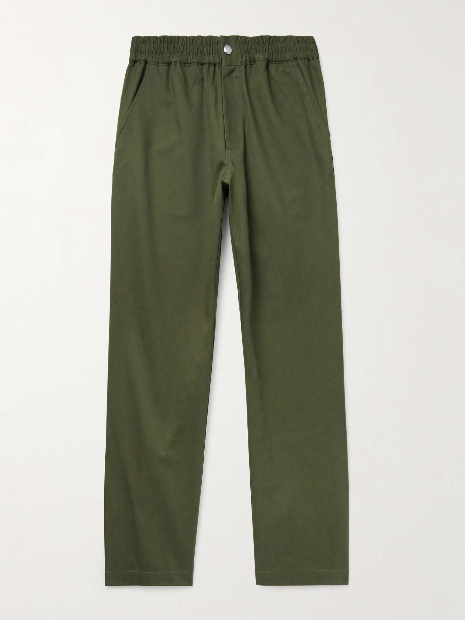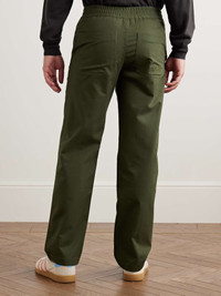 The simplicity of Maison Kitsune's trousers makes them easy to style with any of the label's tees or sweaters. Featuring a wide elasticated waistband, they're cut for a roomy, straight cut from cotton-twill and embroidered with a scripted logo at the back pocket. Size & Fit - Fits true to size. Take your normal size - Regular-straight leg, low-crotch style - Elasticated at the waist - Lightweight, non-stretchy fabric - Model is shown wearing a FR 40 - Model measures: waist size 32, height 6'2"/ 188cm Details & Care - Army-green cotton-twill - Snap and zip fastening - 100% cotton - Machine wash - Designer colour: Military Green