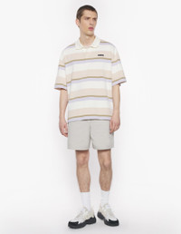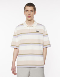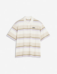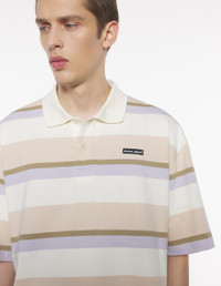DETAILS Short sleeve polo shirt in cotton with Bold Stripes. Oversized cut with Maison Kitsune Handwriting signature label appliqueee. - Cotton jersey polo shirt with Bold Stripes motif - Oversized cut - Contrasted poplin polo collar with hidden button placket - Maison Kitsune Handwriting signature label appliqueee on the chest - Short sleeves OM00206KJ7019-0233 SIZE & CUT Cut: OVERSIZE Sizing: MEN The male model is 11 and is wearing size M MATERIAL 100% COTTON TRACEABILITY Made in Portugal