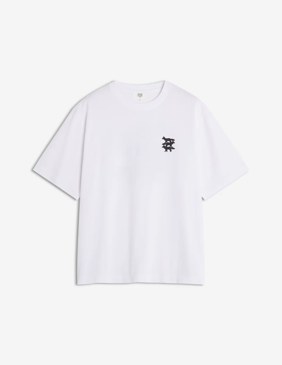 DETAILS Short-sleeved T-shirt in cotton jersey (240g). Oversize fit with Stunt Fox by Kajsa print designed by Kajsa Stahl. Kajsa’s designs combine the architectural with the funny and surreal. Three foxes are stacked upon each other in the “Sunt Fox” design - Cotton jersey (240g) T-shirt - Organic cotton - Oversize fit - Short sleeves - Crew neck with rib finishing - Stunt Fox print by Kajsa Stahl on the chest and back PM00103KJ0119-P100 SIZE & CUT Cut: OVERSIZE Sizing: MEN The male model is 6.2 and is wearing size M MATERIAL 100% COTTON TRACEABILITY Made in Portugal