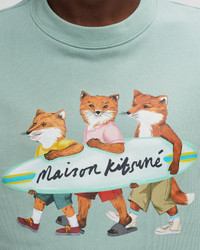 The Maison Kitsuné light fleece sweatshirt has a relaxed comfort cut with a Surfing Foxes print on the chest. Ribbing at the cuffs, neckline and waist ensures perfect wearing comfort. - Light fleece sweatshirt - Comfort cut - Crewneck - Long sleeves - Ribbing at the cuffs, neckline, and waist - Surfing Foxes print on the chest Article Number: MM00310KM0129-SEAFOAM-BLUE Gender: Men Color: SEAFOAM BLUE Material: 100% Cotton