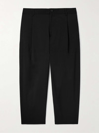 The cropped shape of Maison Kitsuné's trousers is reminiscent of classic French workwear. They're tailored from wool with pleats making the tapered legs more roomy and flexible. Size & Fit - Fits true to size. Take your normal size - Tapered leg, low-crotch style - Partially elasticated at the waist - Cropped length - Lightweight, non-stretchy fabric - Model is shown wearing a FR 42 - Model measures: waist size 32, height 6'0"/ 183cm Details & Care - Black wool - Button and zip fastening - 100% wool - Dry clean