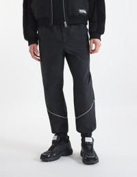 DETAILS Nylon technical pants. Relaxed fit with silicon Flash Fox patch under the back pocket. - Nylon technical pants - Relaxed fit - Elasticated waistband - Closure with engraved metal snaps and hidden zipper - Two slash side pockets - Welt pocket with hidden zipper at the back - Silicon Flash Fox patch under the back pocket - Panels with contrast piped trim at the bottom - Elasticated tapered hems NM01101WQ4030-P199 SIZE & CUT Cut: RELAXED Sizing: MEN The male model is 6 and is wearing size 40 MATERIAL 100% POLYAMIDE TRACEABILITY Made in China
